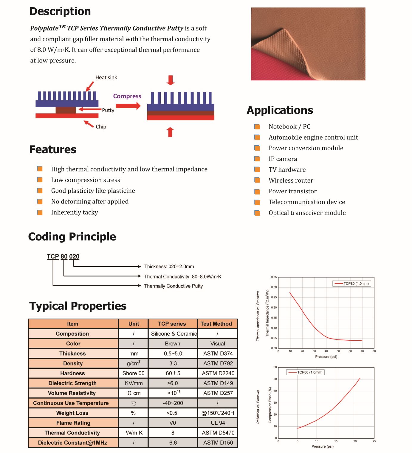 TM TCP系列導熱泥是一種柔軟的具有導熱性的柔性間隙填充材料。導熱系數為8.0 W/m·K,可以在低壓下提供卓越的熱性能。" />