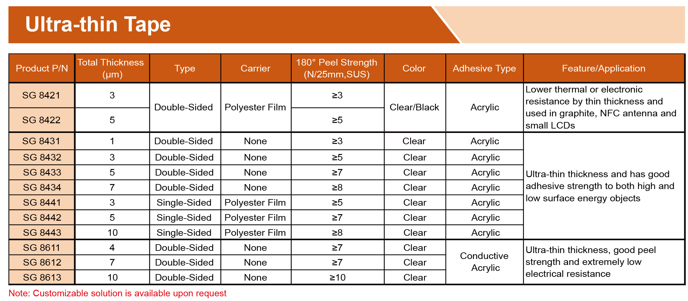 提供各種膠帶,由PET、無紡布、泡沫、涂有丙烯酸、硅樹脂、橡膠、熱熔、熱轉化粘合劑的PI基材制成。可提供各種寬度、長度和釋放襯墊,以滿足特定需求,專為工業、商業和家庭應用的特殊環境而設計。